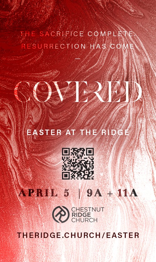 Mark your calendar, and invite your friends and family, for Easter with The Ridge! All are welcome to gather with us in person and online! You can attend one of the services or join us from wherever you are, on The Ridge app, www.theridge.church/live, Facebook, and YouTube.